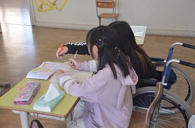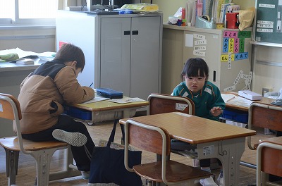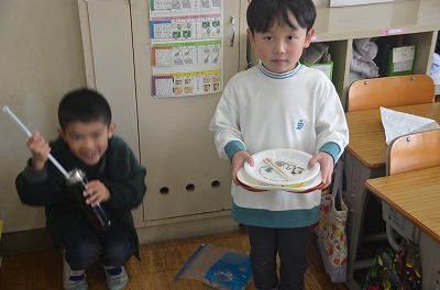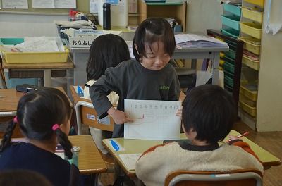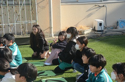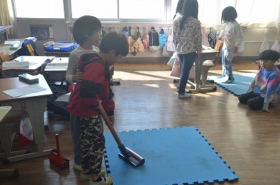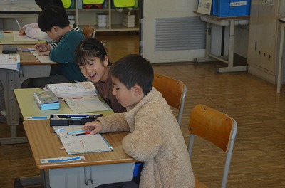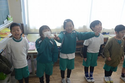 ▲これは休み時間の様子です。「みてみて~」と言って得意技を見せてくれました。