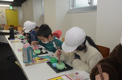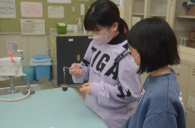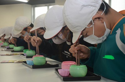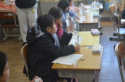 ▼1分間にいくつあずきを反対側の器に移せるかというゲームをしました。真剣です。