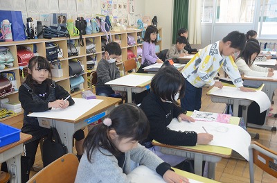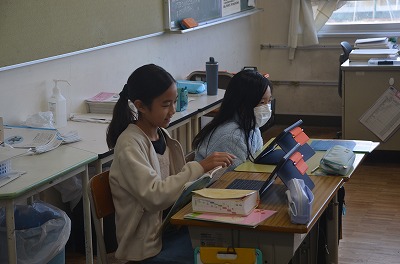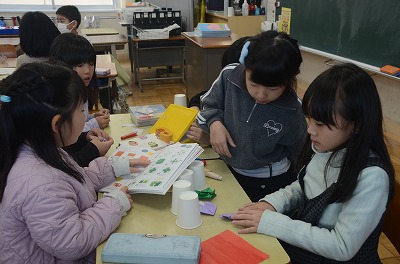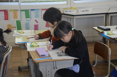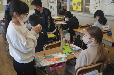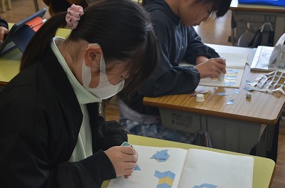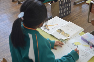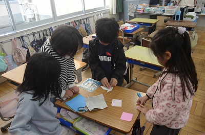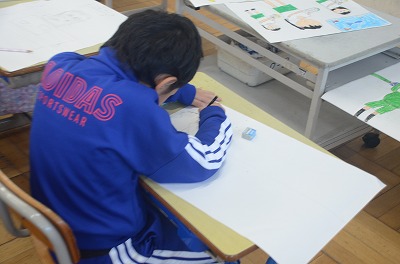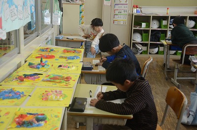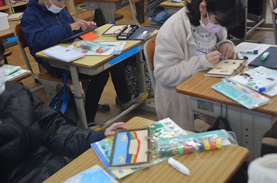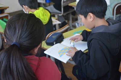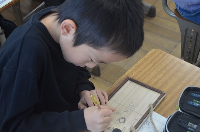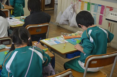 自分の作品について工夫したところを、鑑賞カードには友だちの作品をみて素敵なところをみつけて書きました。
