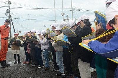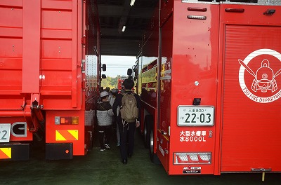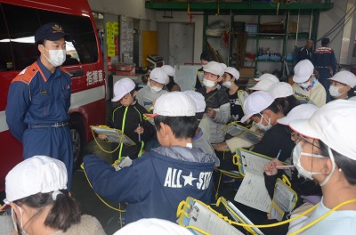 ▼消防署に到着しました。まず、署員の方から説明を聴きます。