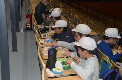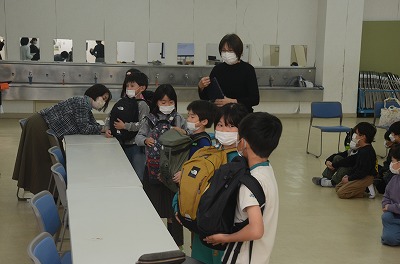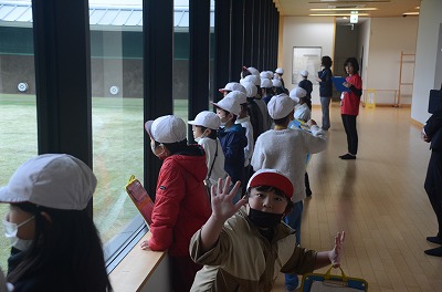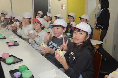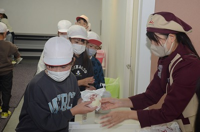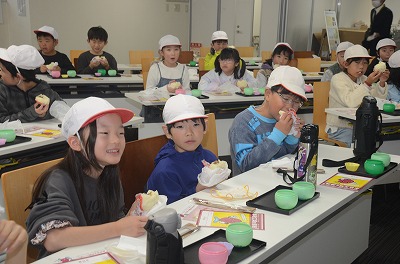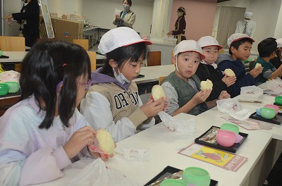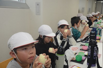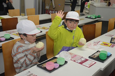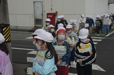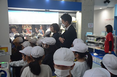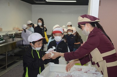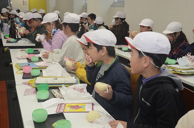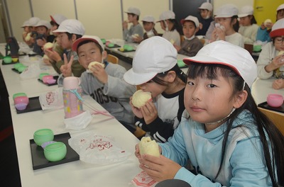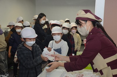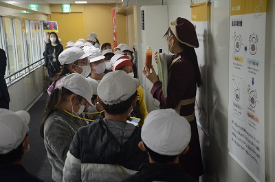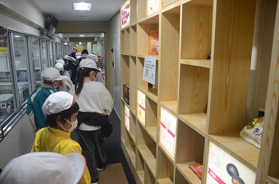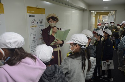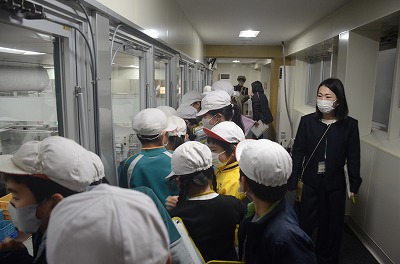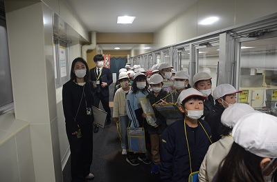 ▼肉まんができるまでの製造ラインを見学させていただきました。企業秘密のため、児童の見学の様子のみ許可をいただきました。