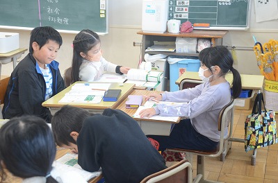 ◇国語 子どもたちが真剣に考え、自分の考えを伝えあっています。伝えあうことでもう一度考え、自分の考えをさらに深いものにしています。表情がとても素敵です。