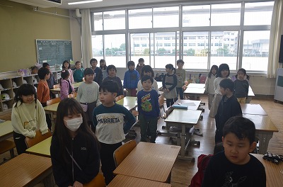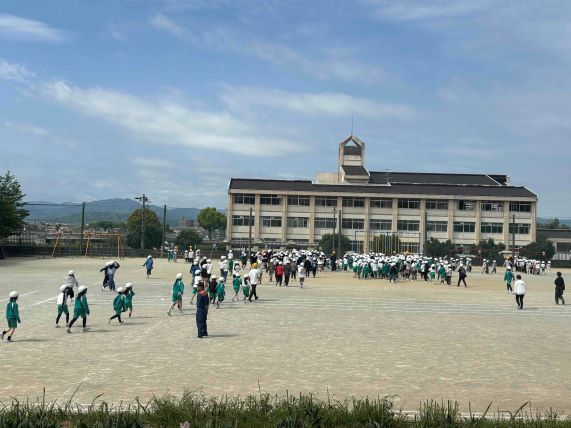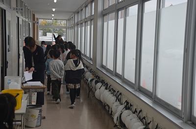 本日の中学校との合同避難訓練は、雨天のため延期になりました。
