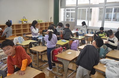 各教室では担任から1枚1枚成長したことをほめながら通知表を手渡していきました。