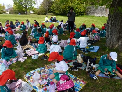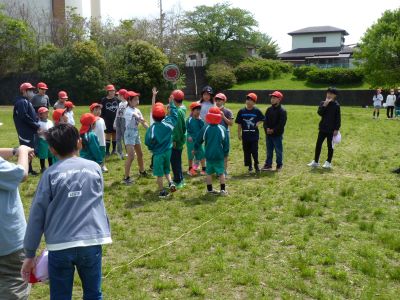 遠足の日でした。1・6年はつつじ公園に行きました。