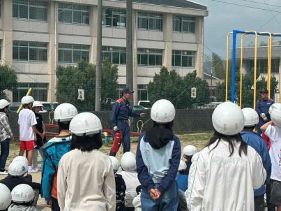 雨で延期になっていた避難訓練を実施しました。南分署の方に来ていただきました。