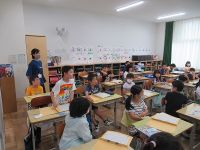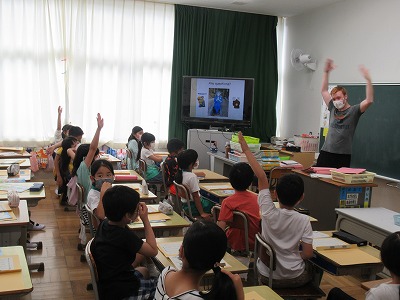 3年生がALTの先生と英語の専科の先生と担任の先生が協力して行います。