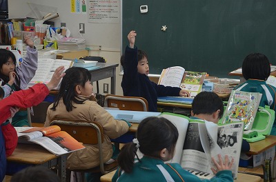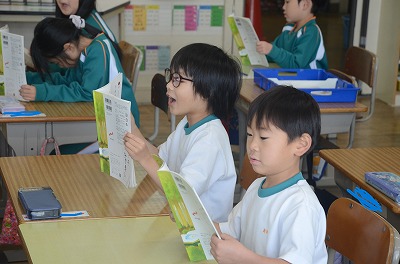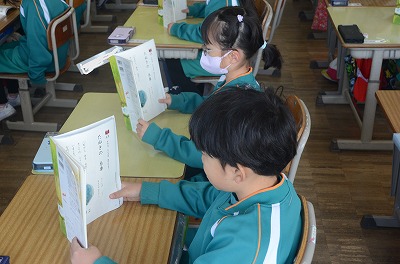 ◇国語 音読 今日は1列ずつ声をそろえて文を読みました。