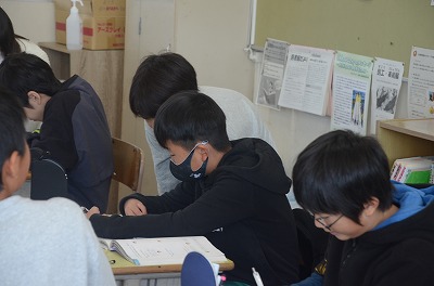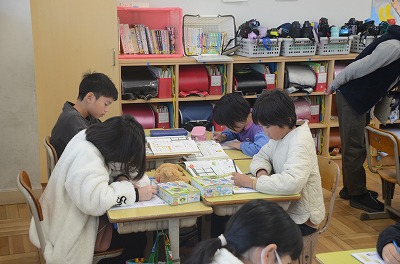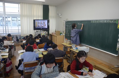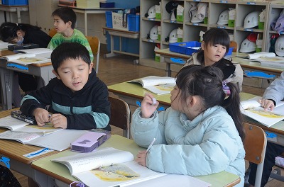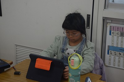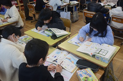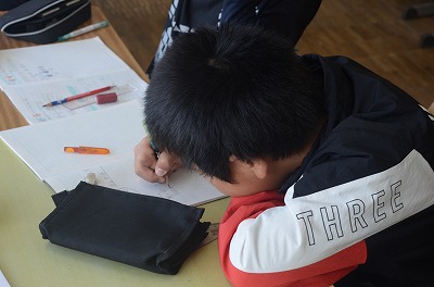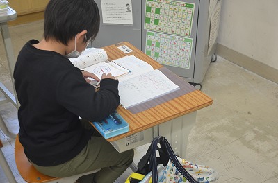 ▼集中して算数の問題に取り組んでいます