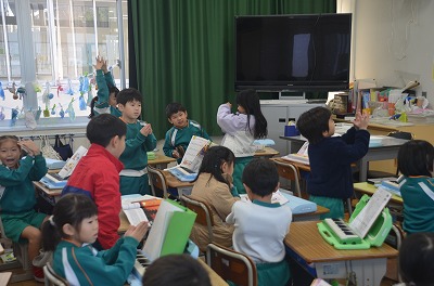 ◇音楽 鍵盤ハーモニカで「どんぐりころりん」などを練習しました。とてもおいしかったです。