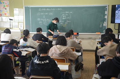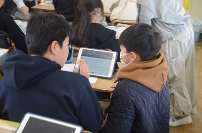 ▼子どもたちが真剣に考え、話し合っています。
