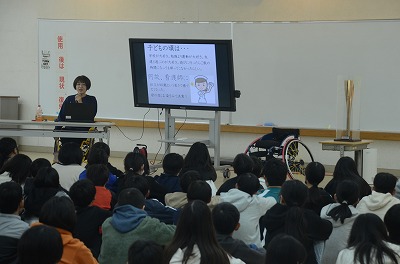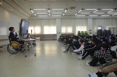 ◇総合 3眼目に車いすバスケットボールの選手の方にふれあいホールに来ていただき、お話を聞かせていただきました。