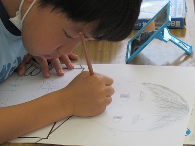 図工の時間です。何を描いているのかな?自画像かな・・・
