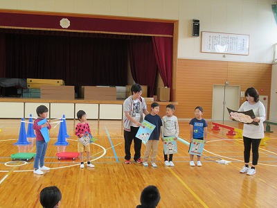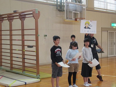 1時間目に体育館で、前回の続きの生活単元学習を行いました。