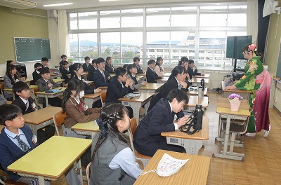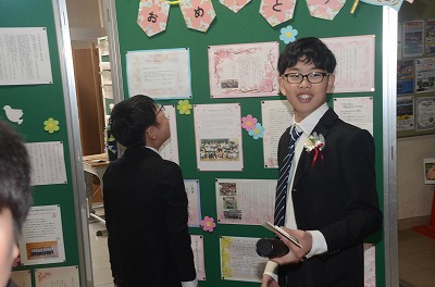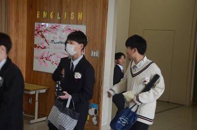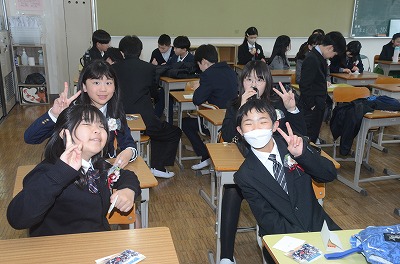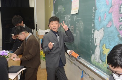 始業式が終わったあと教室では宿題の提出・明日の連絡・プリントの配付などを行いました。教室の黒板に書かれた担任からのメッセージも工夫されていて素敵でした。