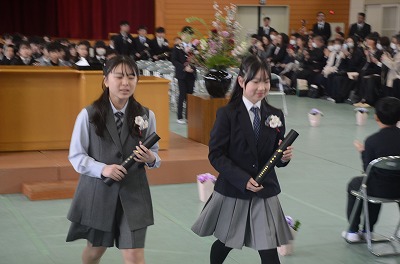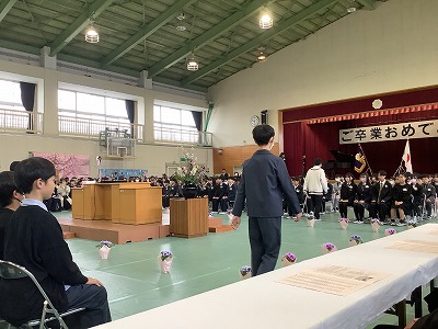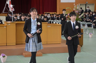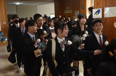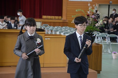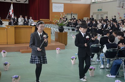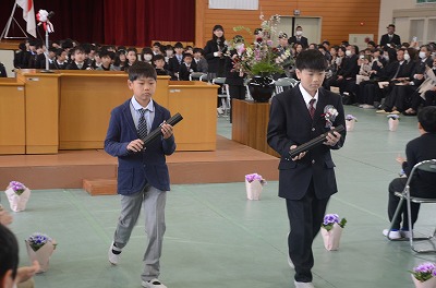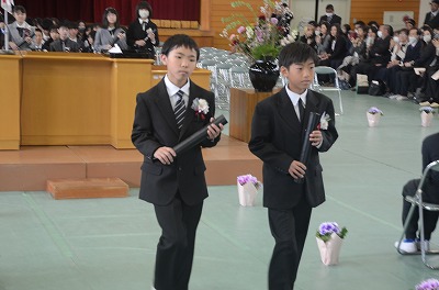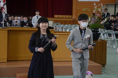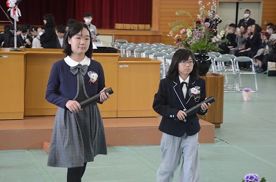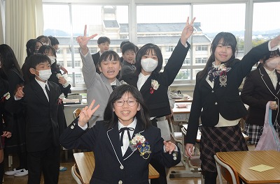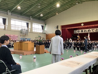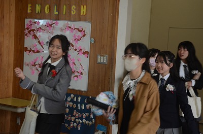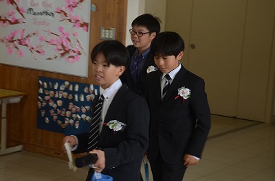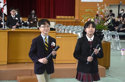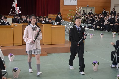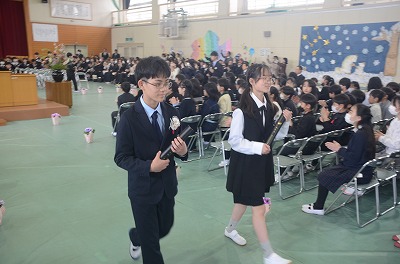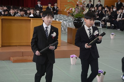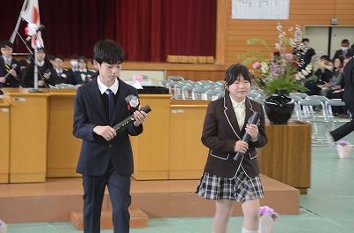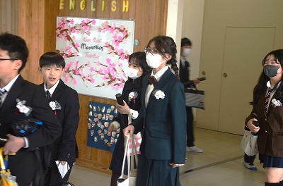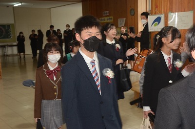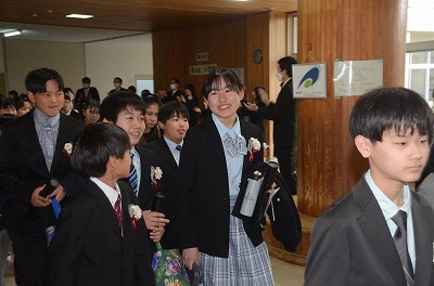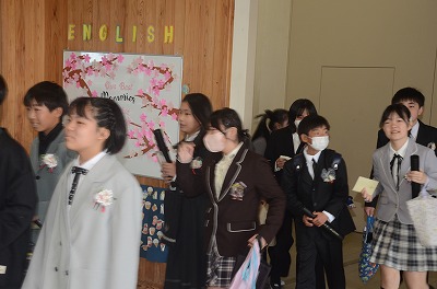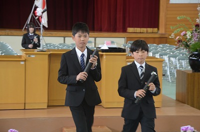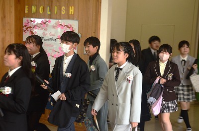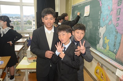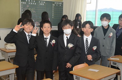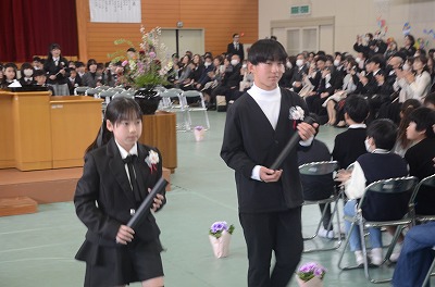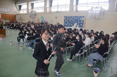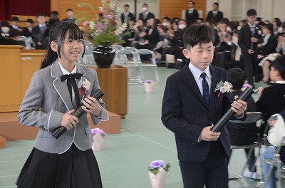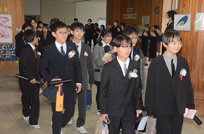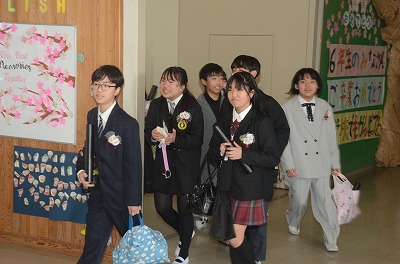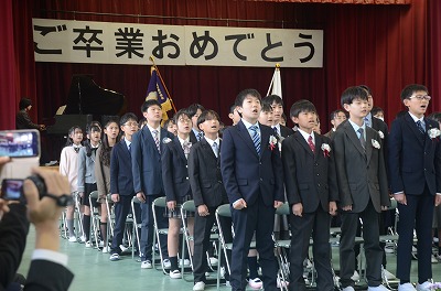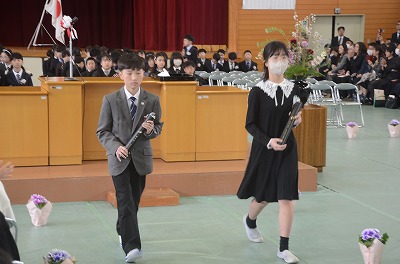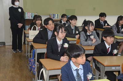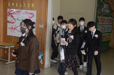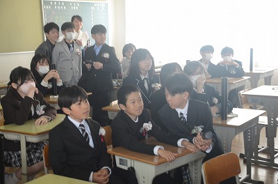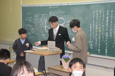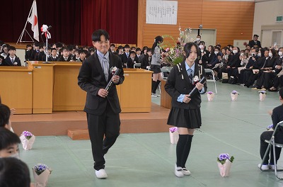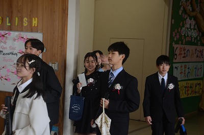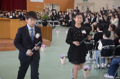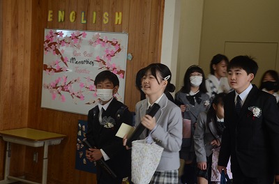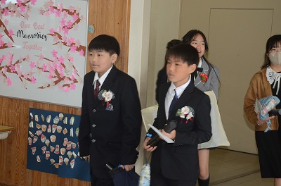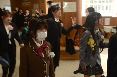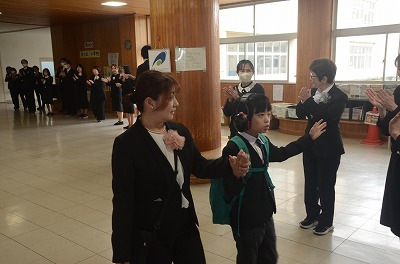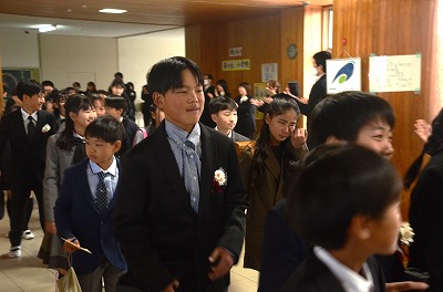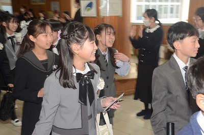 【お見送り】6年生が5年生・職員に見守られる中、巣立っていきました。