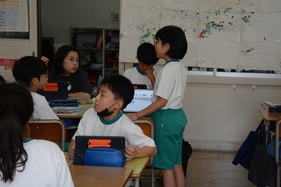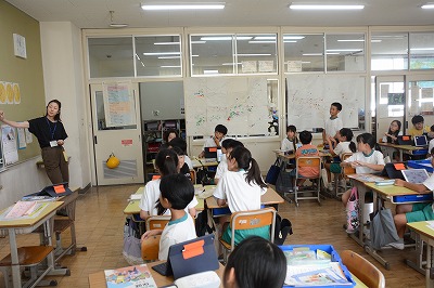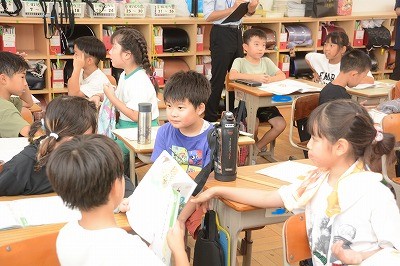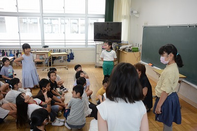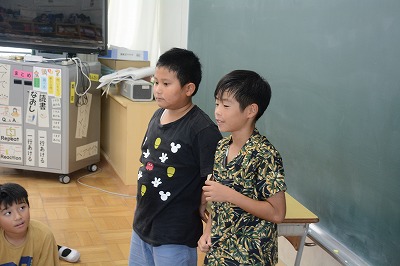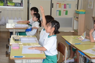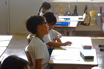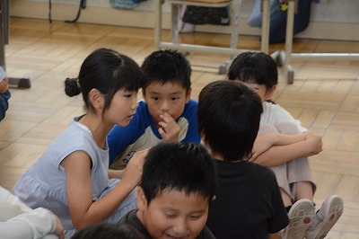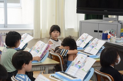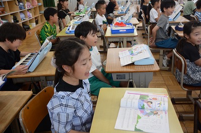 ほんのちょっぴり朝夕の気温が下がってきました。音楽では「虫の声」という曲を子どもたちは元気に歌っていました。