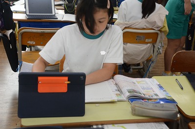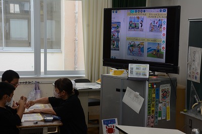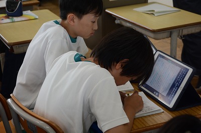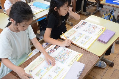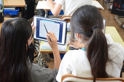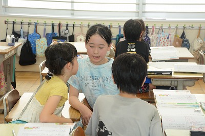 挿絵の様子を子どもたちが説明しています。 図形の拡大図・縮図