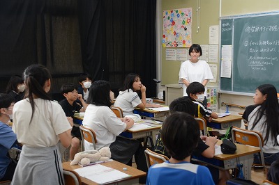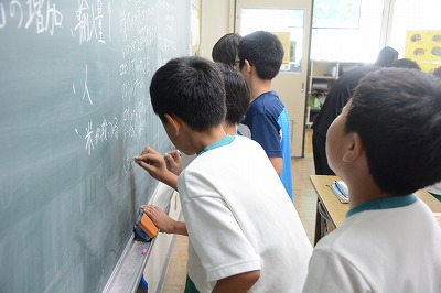 みんなが楽しく修学旅行に行ってくるためにどんなことを考えなければならないのか担任は子どもたちに投げかけました。