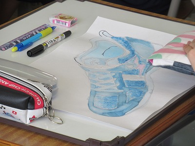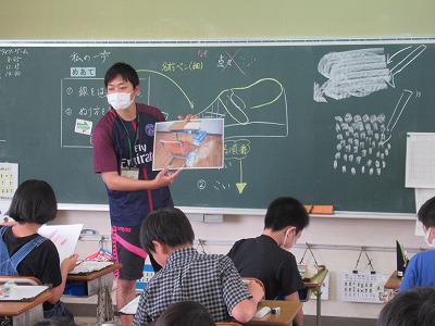 これは6年生の図工でしょうか。「水入れは机の脚元にぴったりとつけて置きます。誰かが通ったとき足にひっかけられないようにします。」と「筆で色をぬる時はどのようにしていくといいでしょう?」