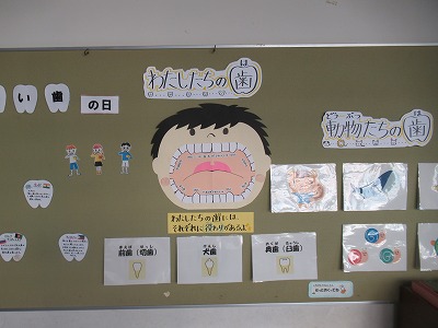11月8日は「いい歯の日」です。人の歯の働きや動物の歯のことについて掲示しています。