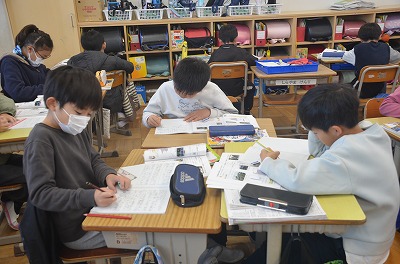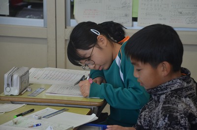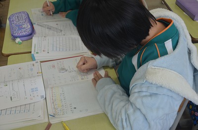 小数や整数に比べ分数の計算になると難しく感じてしまいます。子どもたちは一生懸命考えていました。