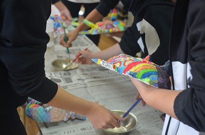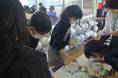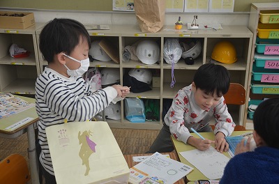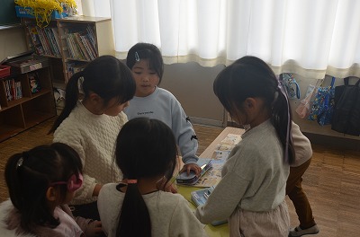 ◇生活 幼稚園の園児さんを迎えておもちゃランドを開いて楽しんでもらいます。きょうはその準備をしていました。