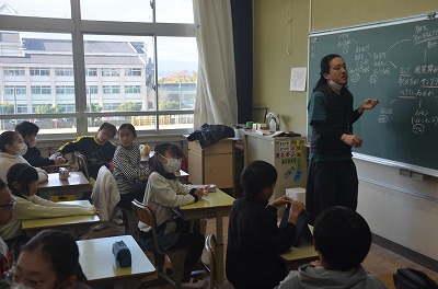 ▼ALTの指示はすべて英語で行っています。子どもたちはそれをしっかりと聞きながら意味を考えています。