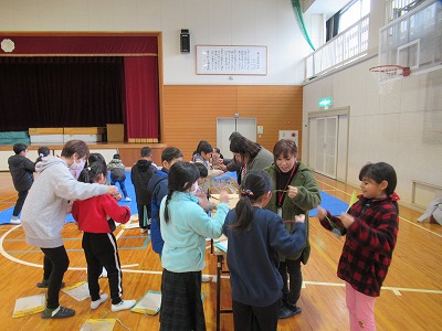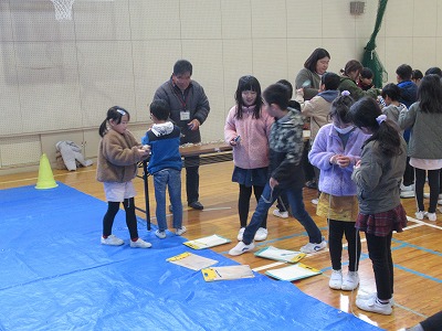 ふれあいホールと体育館に準備された内容を、グループごとに巡りながら体験学習をします。