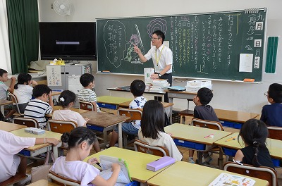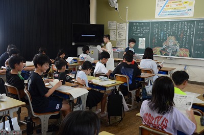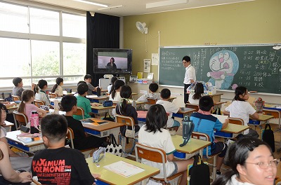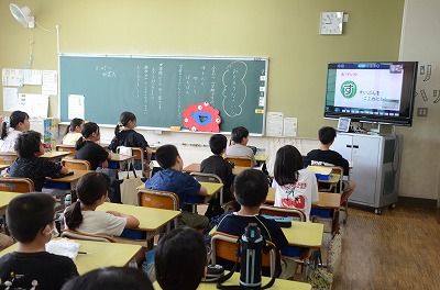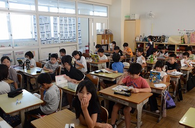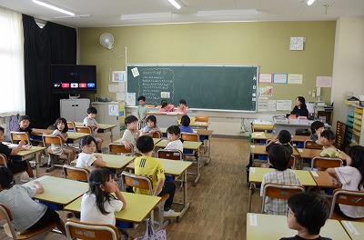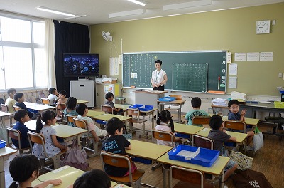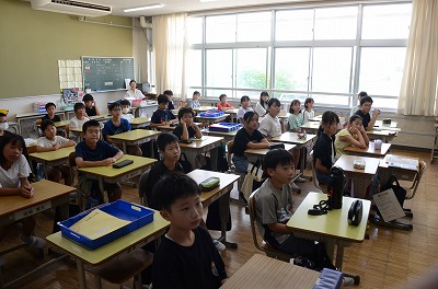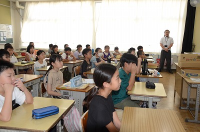 【始業式】熱中症予防のため、教室でお話を聞きました。