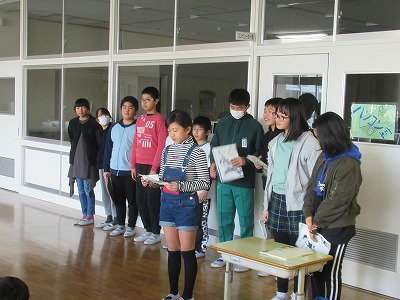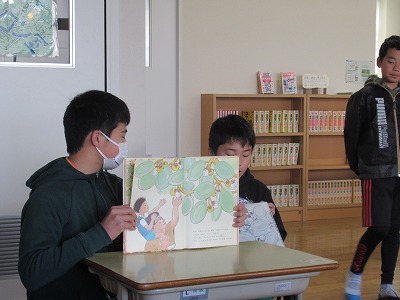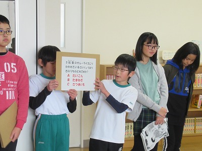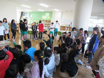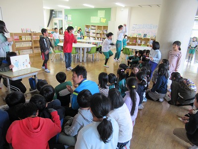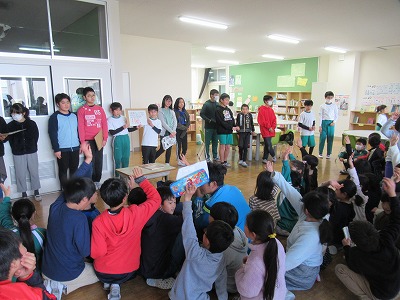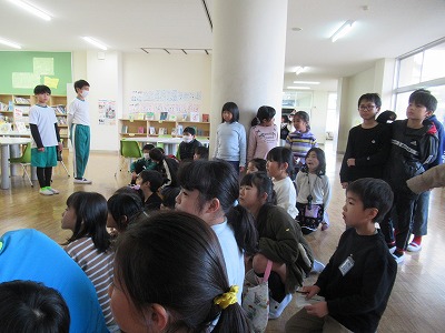 図書室前の2階「のほほん広場」に子どもたちが集まりました。