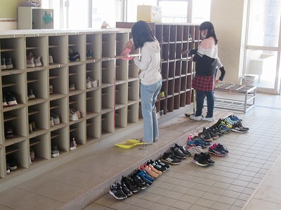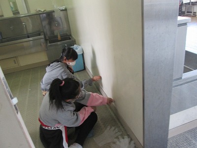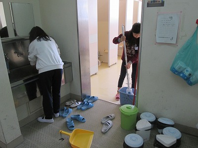トイレ、体育館、昇降口などそれぞれの分担場所をきれいに
