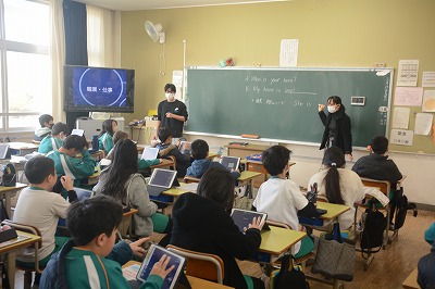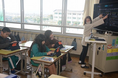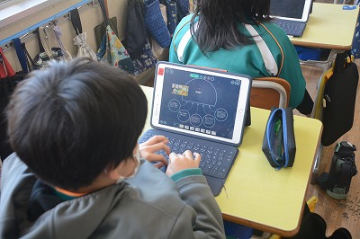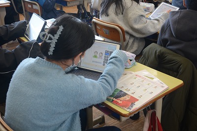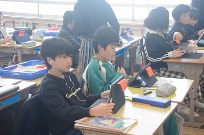 ◇英語科 この時間の初めにタブレットを使って単語学習をしました。タブレットの絵をクリックすると音声が流れます。