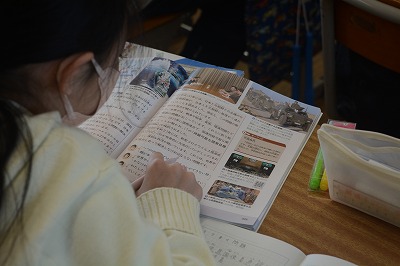 教師が一斉に教えるのではなく、お話を読んでどこが気になったのか、何を考えていきたいのかという”問い”を自分で考える授業でした。