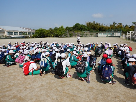 2限目に中学校と合同で避難訓練を行いました。避難の指示が入ると子どもたちは口を押え、姿勢を低くし、しゃべらずに速やかに非難ができました。来ていただいた消防署の方からも後から「子どもたちの避難するときや待っている時の姿にびっくりしました。」とお褒めの言葉をいただきました。