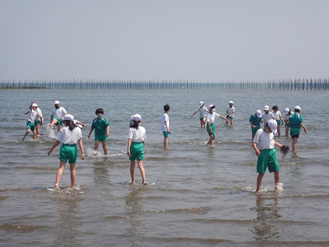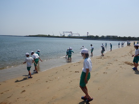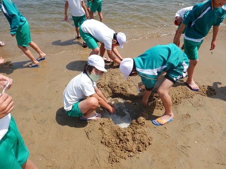 海岸では生き物の観察をしたり砂浜で遊んだりして楽しそうに過ごしていました。