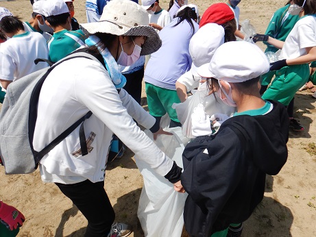昼食後は海岸清掃を行い、子どもたちは一生懸命にゴミ拾いをしていました。
