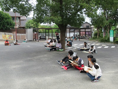 毎年、恒例となっていますが、6年生が図工で校舎の写生に取り組んでいます。