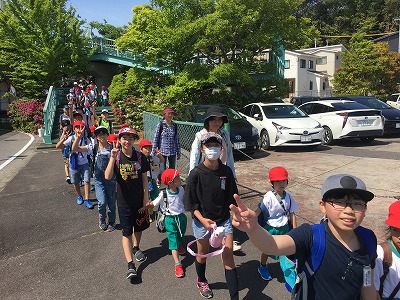 少し歩くだけで汗をかくくらいの晴天となって大変でしたが、6年生が1年生をしっかりとリードしながら古道公園まで辿り着きました。