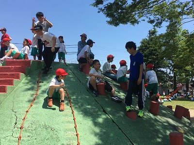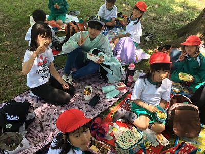 古道公園では、おにごっこやドッヂビー、大なわ跳びなど、それぞれが仲良く楽しむ姿が見られました。あっという間の時間・・・これはまさしく国語で勉強している「心の時間」ですね。
