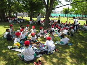 とてもいい天気に恵まれ、6年生と一緒に古道公園に行ってきました。とっても大きくて頼もしい6年生。しっかり手をつなぎ、安全に歩くことができました。「そこあぶないよ。」「そこさわると、汚いよ。」「このまえな~、こんなことがあったんやで~。」「こんな習い事してるよ~」楽しくおしゃべりしていると、長い道のりもあっという間!?でした。よく頑張って歩きました。6年生ありがとうございました。