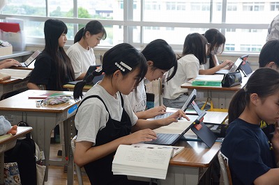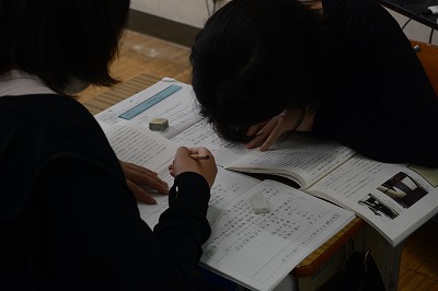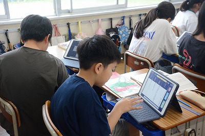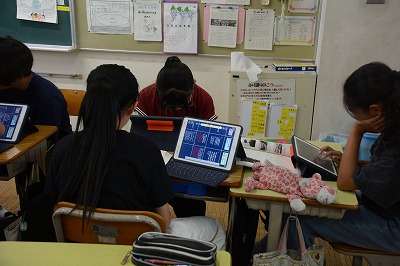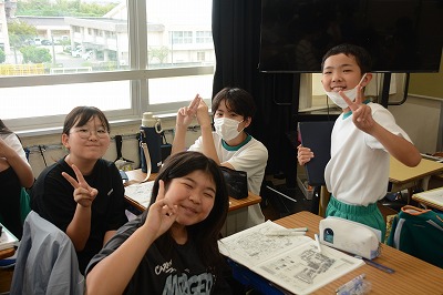 ◇総合 修学旅行まであと1週間となってきました。今日は見学先をホームページで調べていました。私がその様子をカメラで撮影しようとするとピースサインをしました。これも修学旅行の練習なのかな?