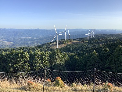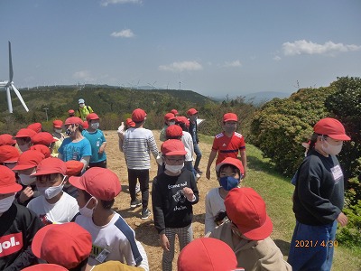 青山高原では、普段山の上に見る風車を目の前にすると、その大きさにみんな驚いていました。