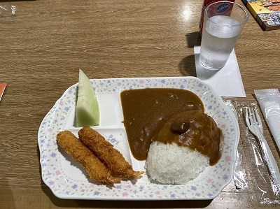美味しそうなエビフライカレーにデザートがついていました。