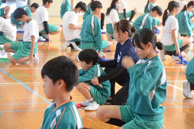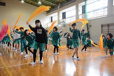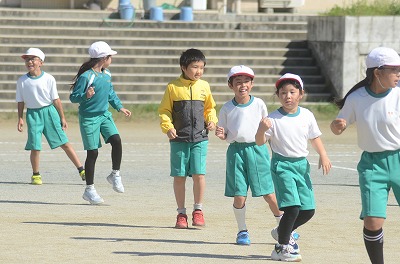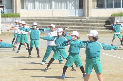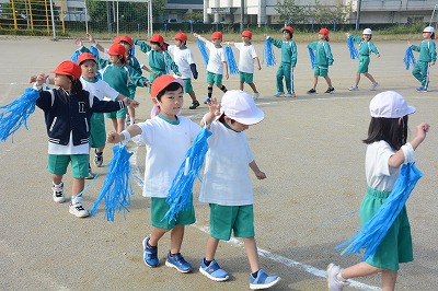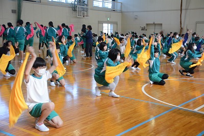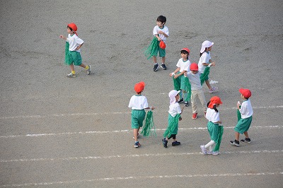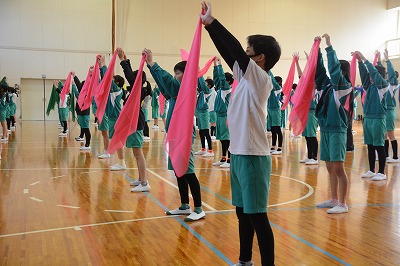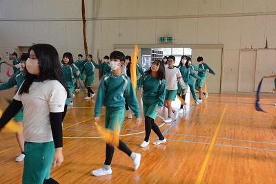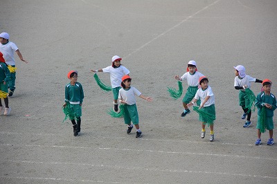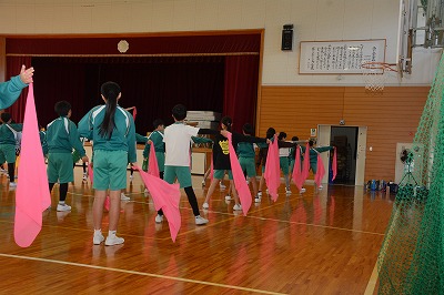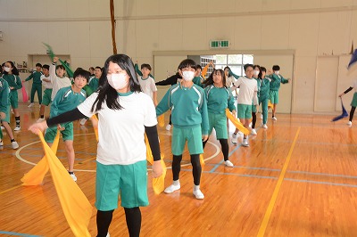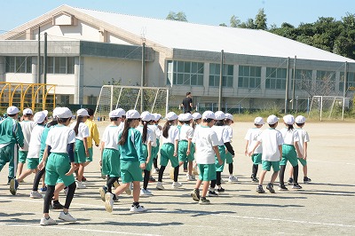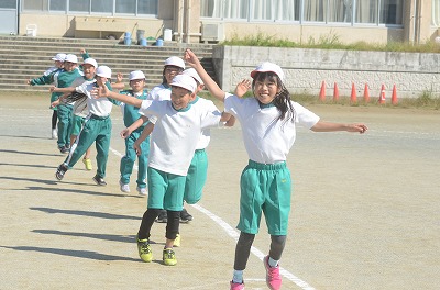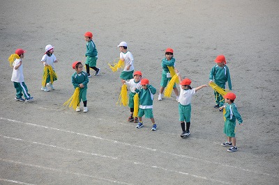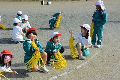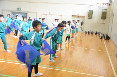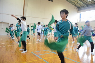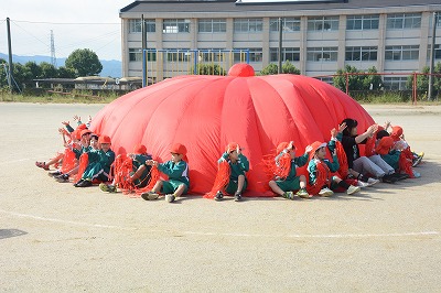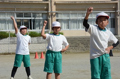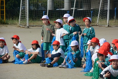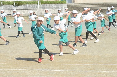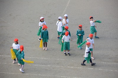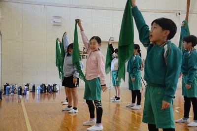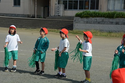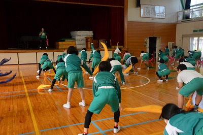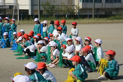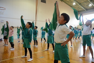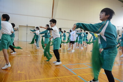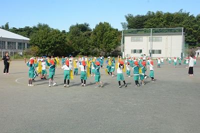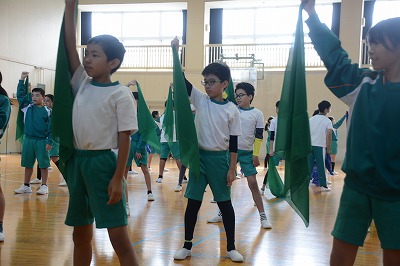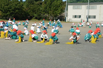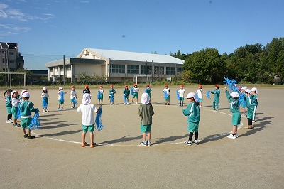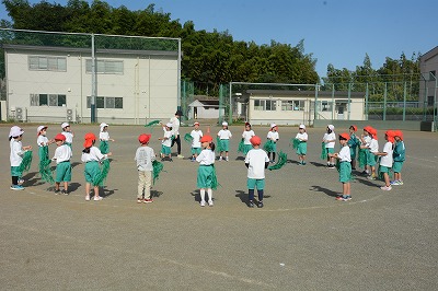 ◇体育 気温・湿度ともさがり、今日は朝から爽やかな秋晴れとなりました。1年生は運動場で運動会の練習を行いました。本番で使う道具も登場してきてとてもカラフルな演技となりました。