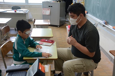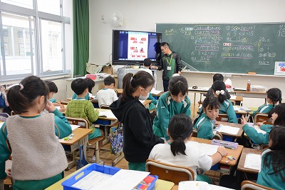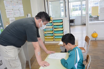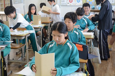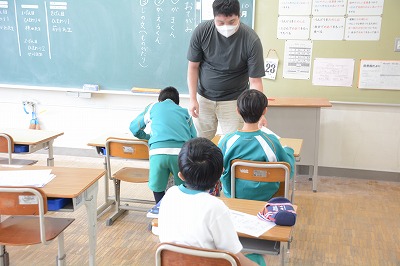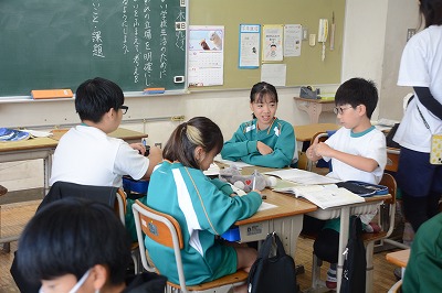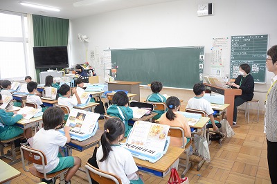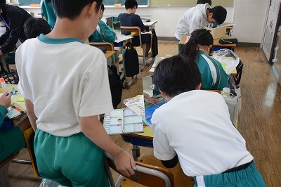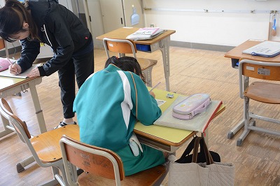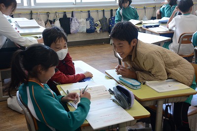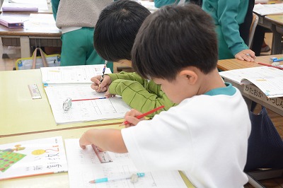 お話を読んで、担任から配付されたシートに必要なことを書き込んでいきました。