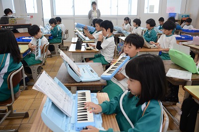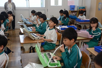 元気に歌ったあと、鍵盤ハーモニカを使って演奏を行いました。