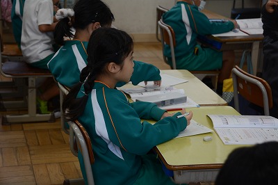 算数の授業の終わりに、今日学習したことのまとめを一人一人しっかりとふりかえっていました。