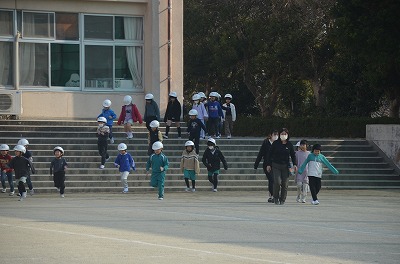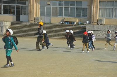 地震はいつ発生するかわかりません。今日は休み時間に地震が発生したという設定で突然の避難訓練を行いました。真剣にそして速やかに避難ができました。