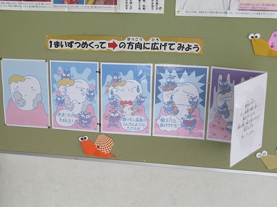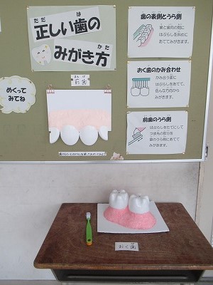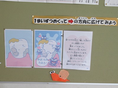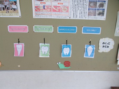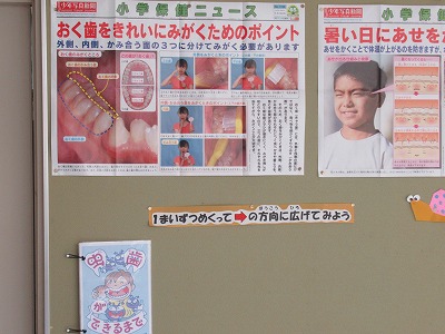 保健室前の掲示も、歯の健康に関係のある情報がいっぱい!
